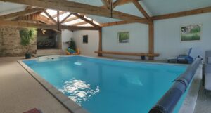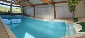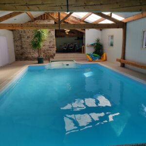 Grande piscine intérieure, située dans un bâtiment annexe, chauffée de mai à septembre